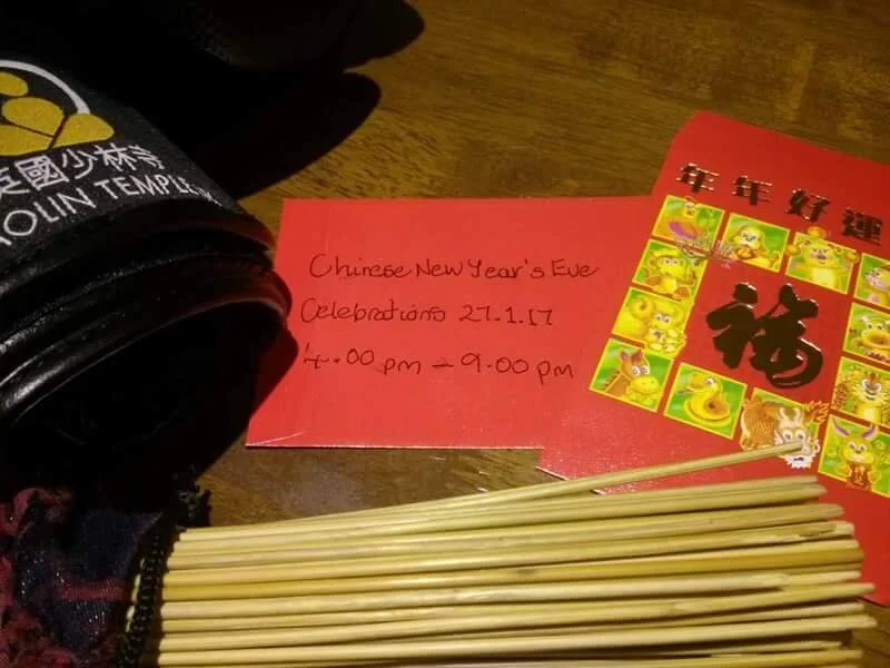 Chinese New Year’s Eve, 27th of January 2017, 4pm until 9pm, at Shaolin temple UK.